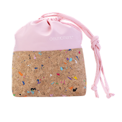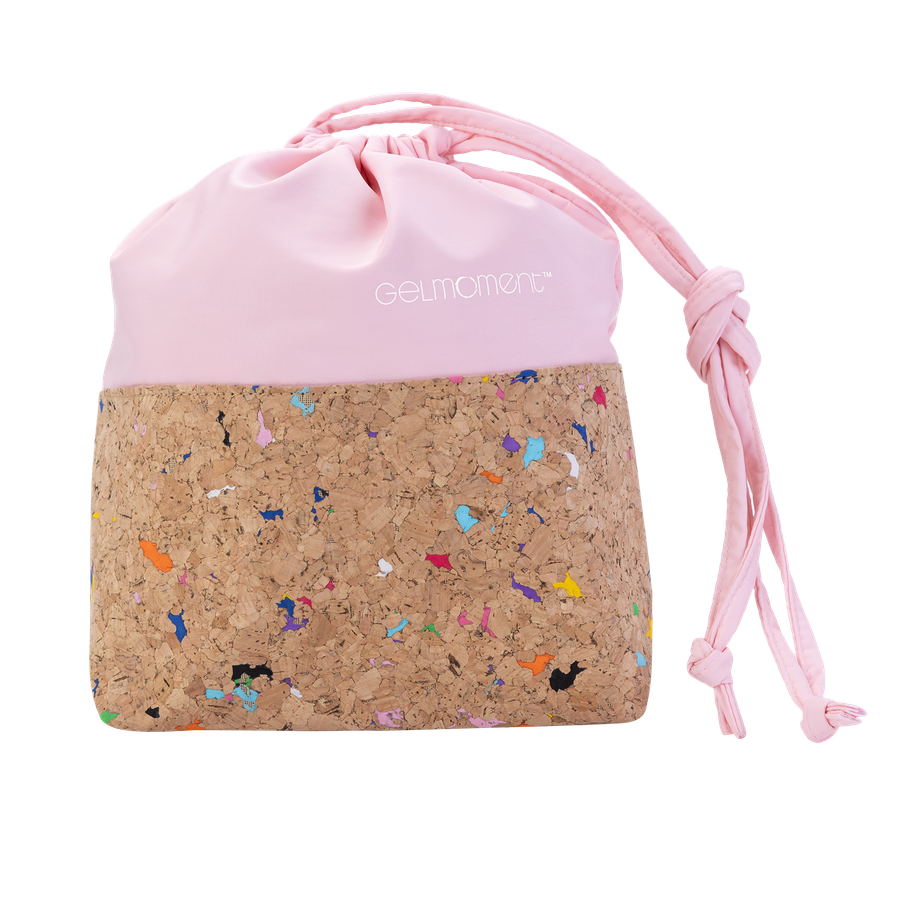 GelMoment’s Cork Drawstring Bag is as sturdy as it is stylish. Tote around your smaller essentials in this perfectly sized and uniquely designed drawstring bag. You have two colour schemes to choose from: cork base with multicolour speckles, pale pink vinyl upper body, and white GelMoment logo; or cork base with gold speckles, black vinyl upper body, and golden GelMoment logo.